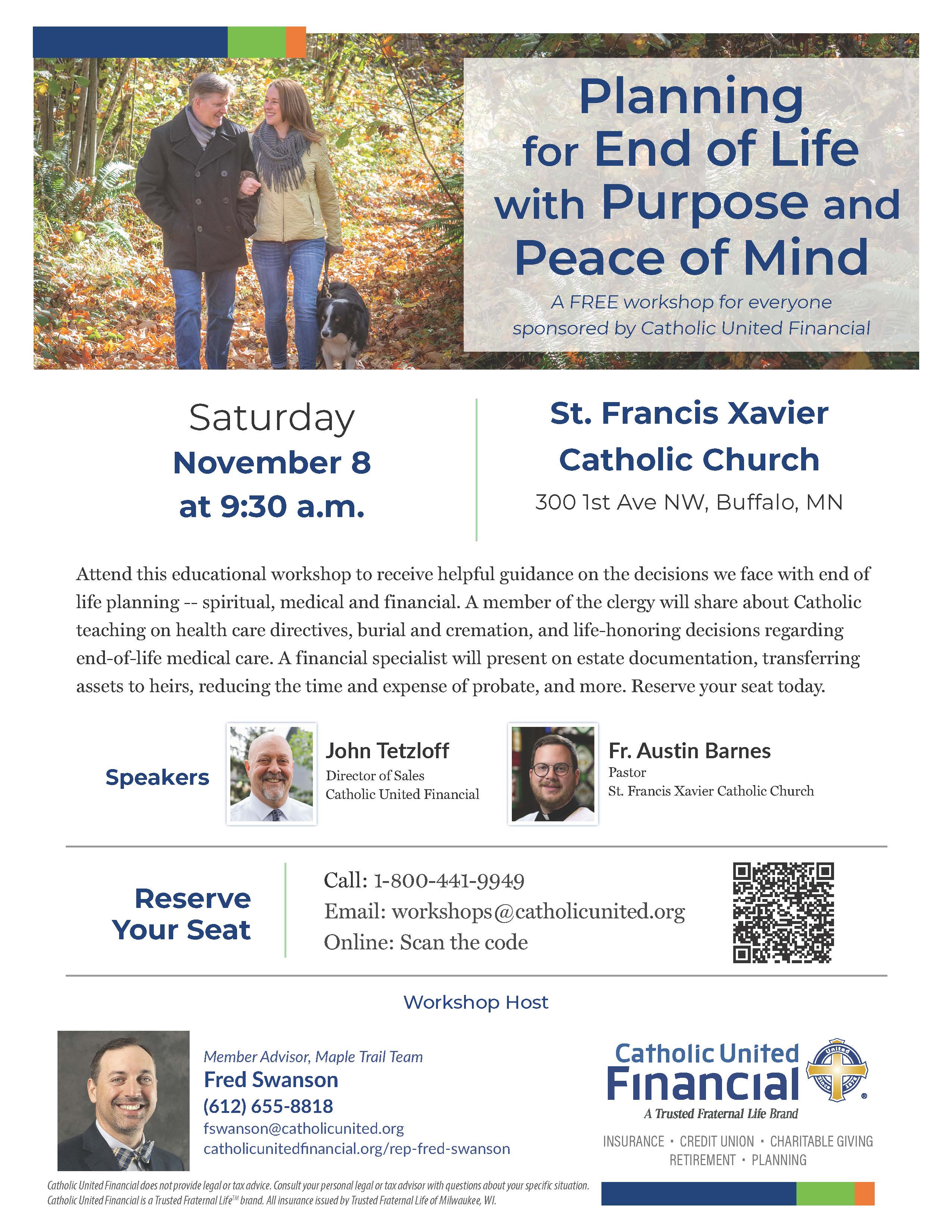 This workshop is sponsored by Catholic United Financial and Member Advisor Fred Swanson. To save your seat, call 1-800-441-9949 or email workshops@catholicunited.org.